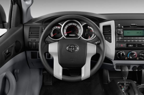 Toyota Tacoma 2013 доступен в 20 различных конфигурациях, включая Regular Cab, Access Cab и Double Cab. Длина кузова – 5-фут или 6-фут (стандарт). В паре с двигателем объемом 2,7 литров работает пятиступенчатая механическая коробка передач; 4-ступенчатая автоматическая коробка передач предлагается опционально (цена вопроса – 900 долларов). 4-литровый двигатель V6 является стандартным для 4WD Double Cabs, и в качестве опции на другие модели (но не все). Tacoma Regular Cab (стоимость – 17 625 долларов) поставляется с кондиционером, тканевой обивкой, AM/FM/CD/MP3/WMA (4 динамика), цифровыми часами, двумя 12-вольтовыми электрическими розетками, системой контроля давления в шинах, стальными колесными дисками (15 дюймов) и полноразмерным запасным колесом.